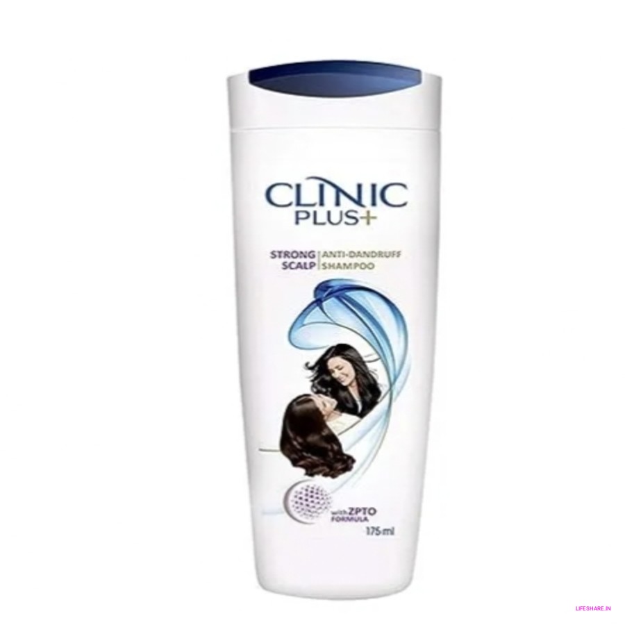 The Clinic Plus Strong Scalp Anti-Dandruff Shampoo is made to help with dandruff on your scalp. It's a shampoo that cleans your hair and might reduce dandruff. It aims to provide care for your scalp, addressing dandruff concerns and keeping your hair clean.