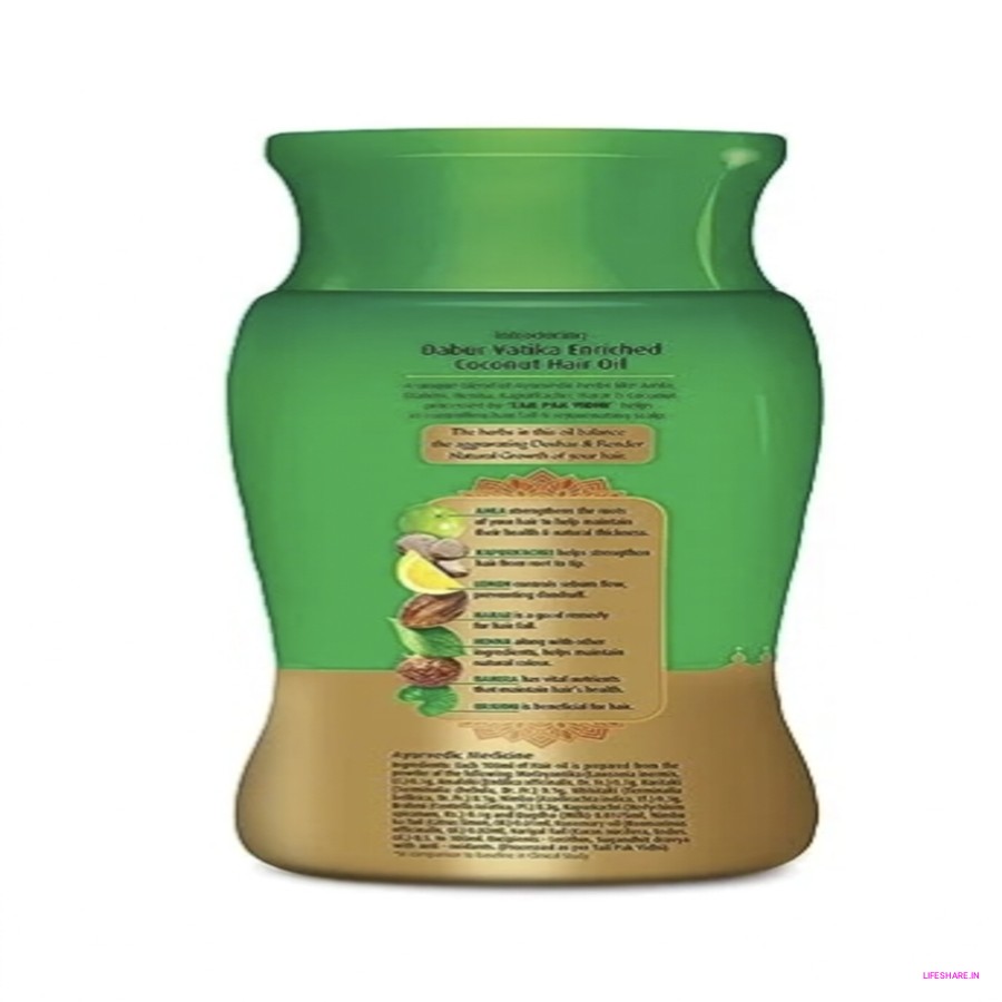 Dabur Vatika Coconut Hair Oil is a special oil for your hair made with coconut. It's like a treatment for your hair. When you use this oil, it helps to make your hair soft and shiny. It's like giving your hair some extra care using the goodness of coconut.