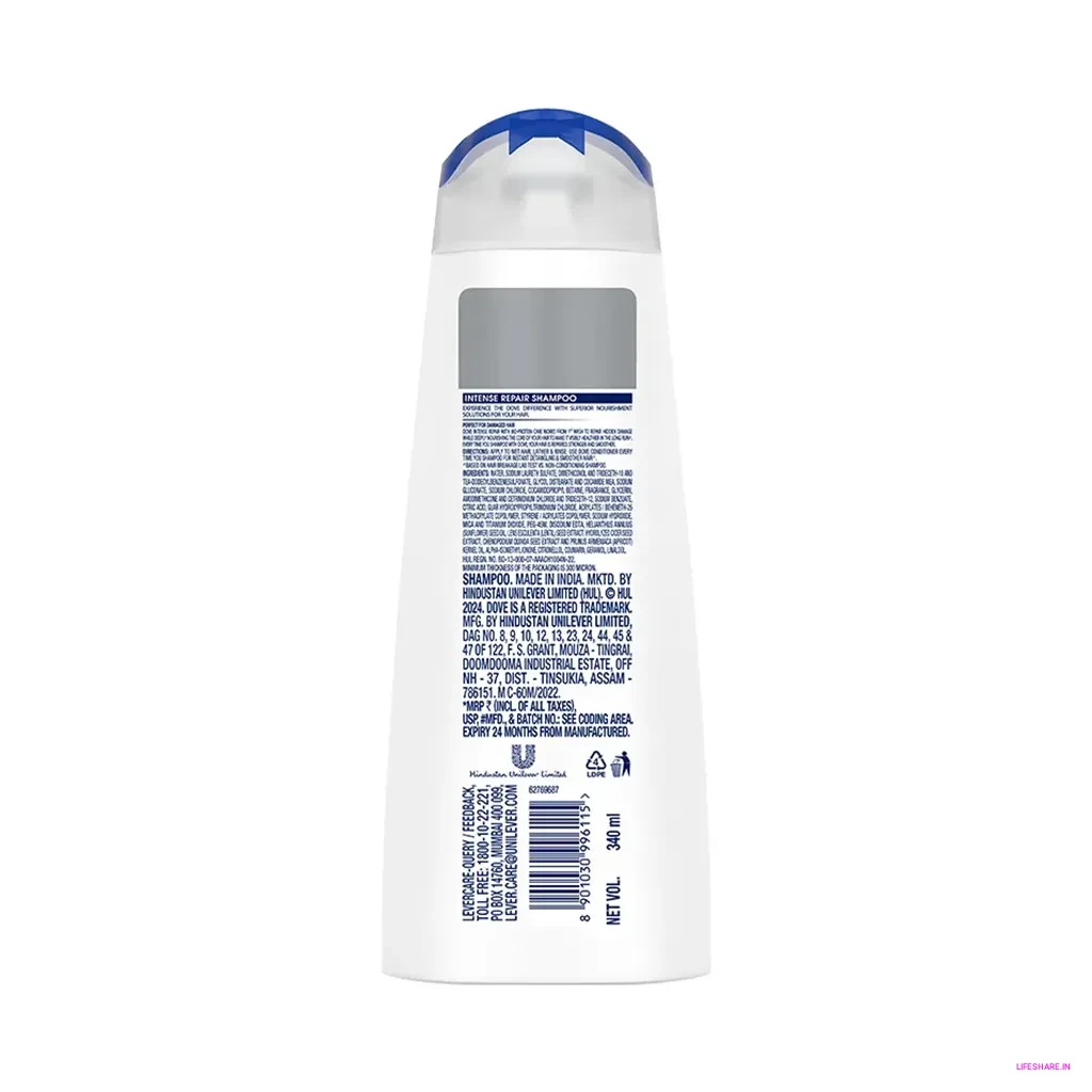 Restore your hair?s health with Dove Intense Repair Shampoo. This nourishing formula repairs damage, leaving your hair soft, shiny, and full of life with every wash.