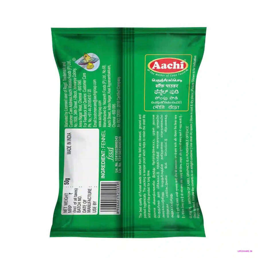 Aachi takes extra care in selecting only the finest fennel seeds to make its powder. This ensures that each pack delivers rich, fresh flavor and a long-lasting aroma, whether you're using it in a savory dish or a sweet treat.