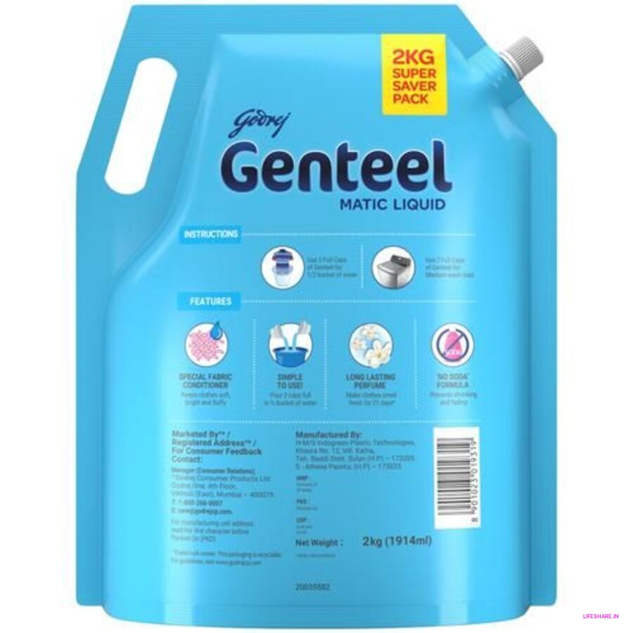 Genteel Matic Liquid Detergent is a specially formulated washing solution designed to care for your clothes while delivering superior cleaning. Enriched with fabric conditioners, it not only removes tough stains effectively but also keeps your garments soft, fresh, and long-lasting. Its gentle liquid formula dissolves easily in water, preventing residue and protecting fabric fibers, making it ideal for both front-load and top-load washing machines. Suitable for all types of clothes, from everyday wear to delicate fabrics, Genteel Matic ensures your laundry is bright, clean, and pleasantly fragrant after every wash.