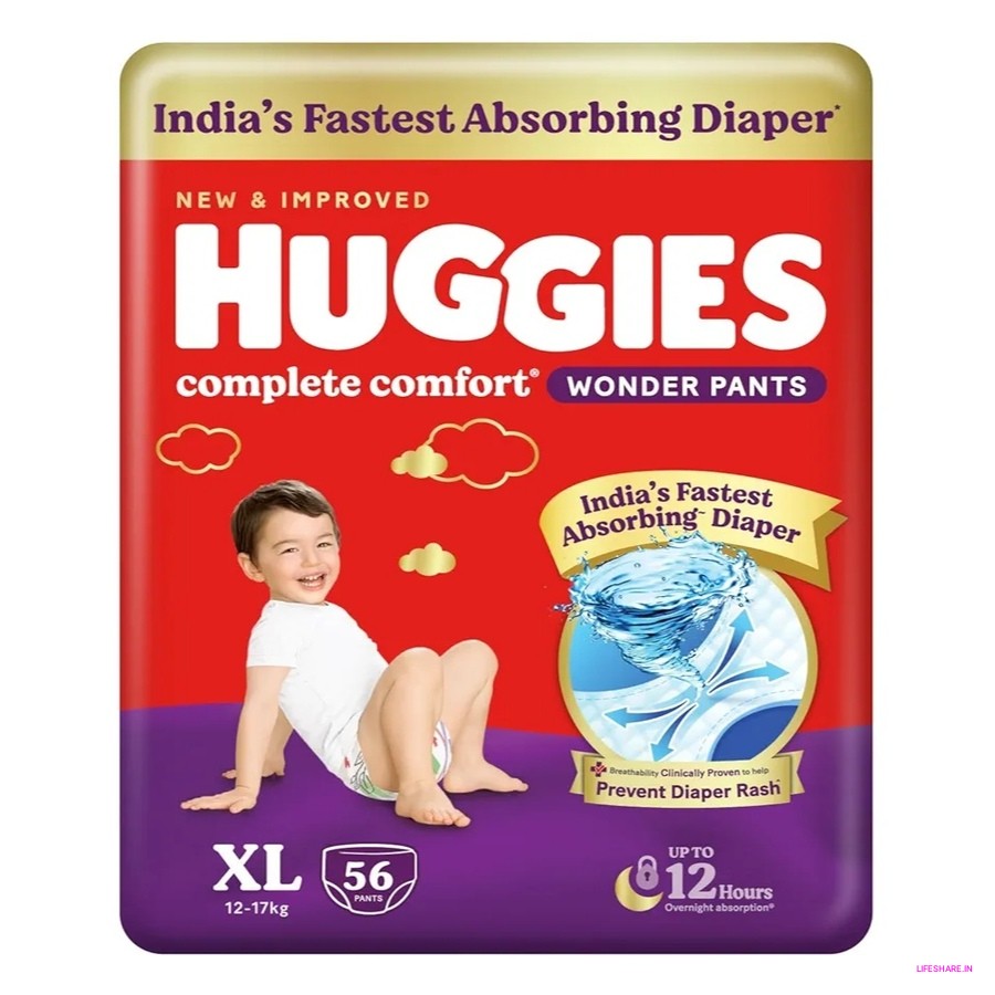 Huggies Complete Comfort Wonder Pants | Pant Style Baby Diapers Extra Large Size, 56 Count | India's Fastest Absorbing Diaper, Prevents Diaper Rash, Ideal for 12 to 17 Kgs