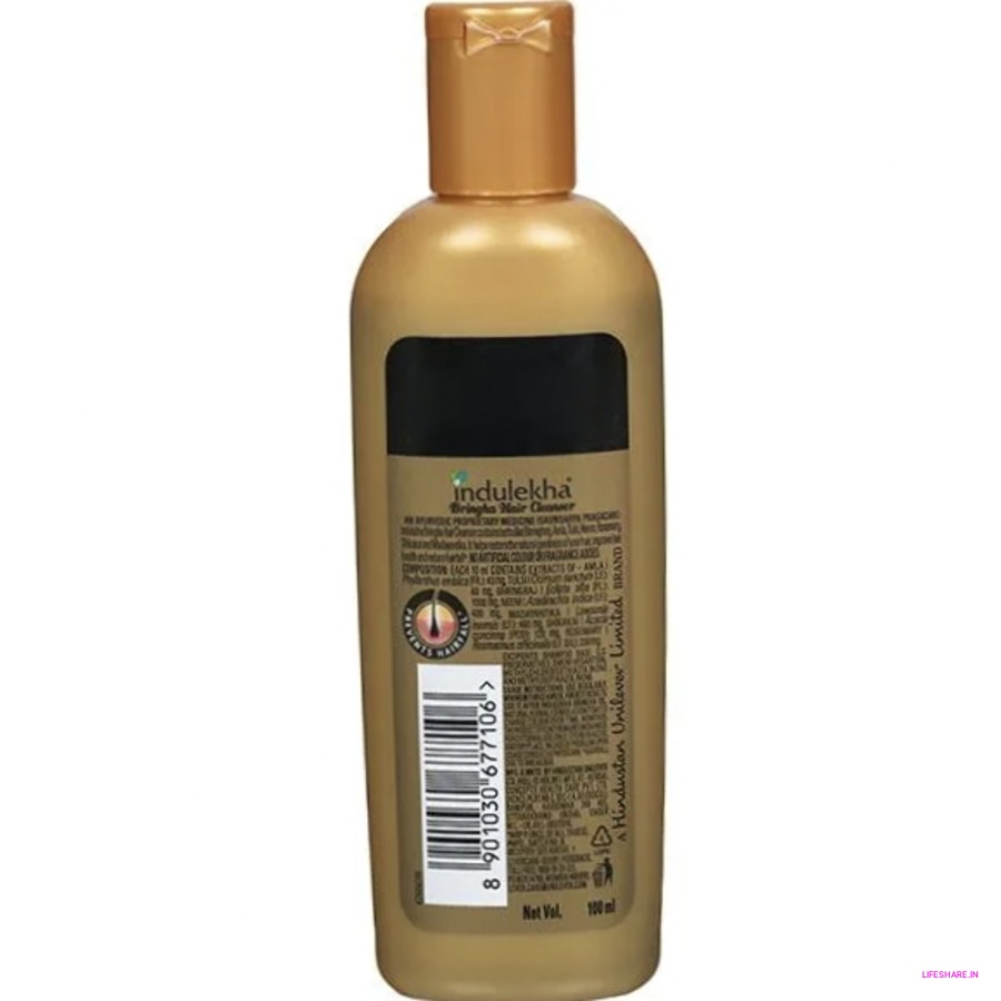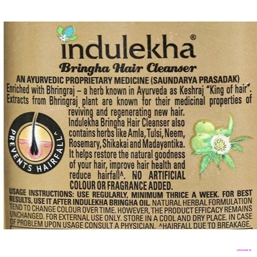 Indulekha Bringha Hair Cleanser is like a special shampoo for your hair. It's made to clean your hair gently and nicely. When you use this cleanser, it removes dirt and things that make your hair not so clean.