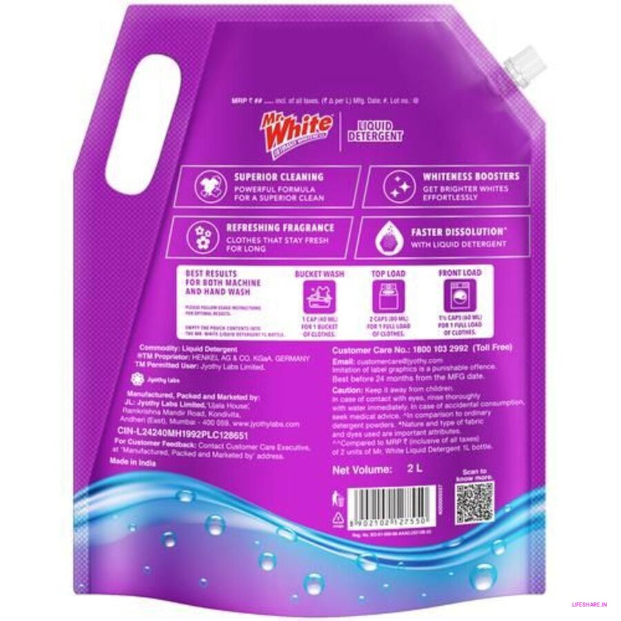 Mr. White Liquid Detergent is specially formulated to give your clothes a spotless shine and long-lasting freshness. Its advanced stain-fighting formula removes tough dirt and grease while being gentle on fabrics, keeping your whites bright and colors vibrant. The liquid detergent dissolves easily in water, leaving no residue, and works effectively in both bucket wash and washing machines. With a pleasant fragrance, Mr. White ensures that every wash leaves your clothes clean, soft, and fresh.