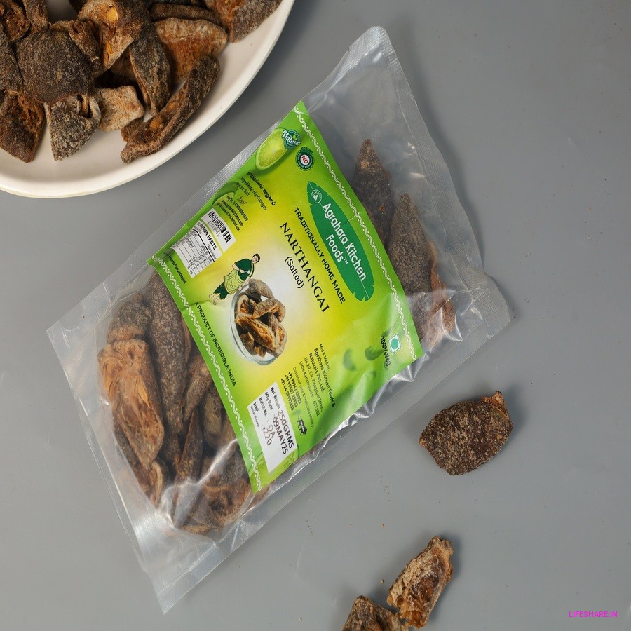 Introducing our Narthangai Dried Pickles/Vathal, a unique and flavorful addition to your kitchen pantry. Made from sun-dried and salted Narthangai, these pickles/vathal are bursting with tangy, salty, and slightly spicy flavors. They are perfect for adding a zesty kick to your meals,