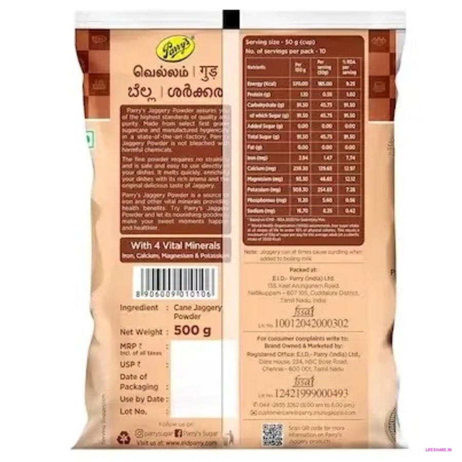 Parrys Jaggery Powder is a type of jaggery powder that is made in India. It is made from the sap of the sugarcane plant that has been boiled down until it crystallizes, and then it is powdered. Parrys Jaggery Powder has a light brown color and a sweet, caramel flavor.