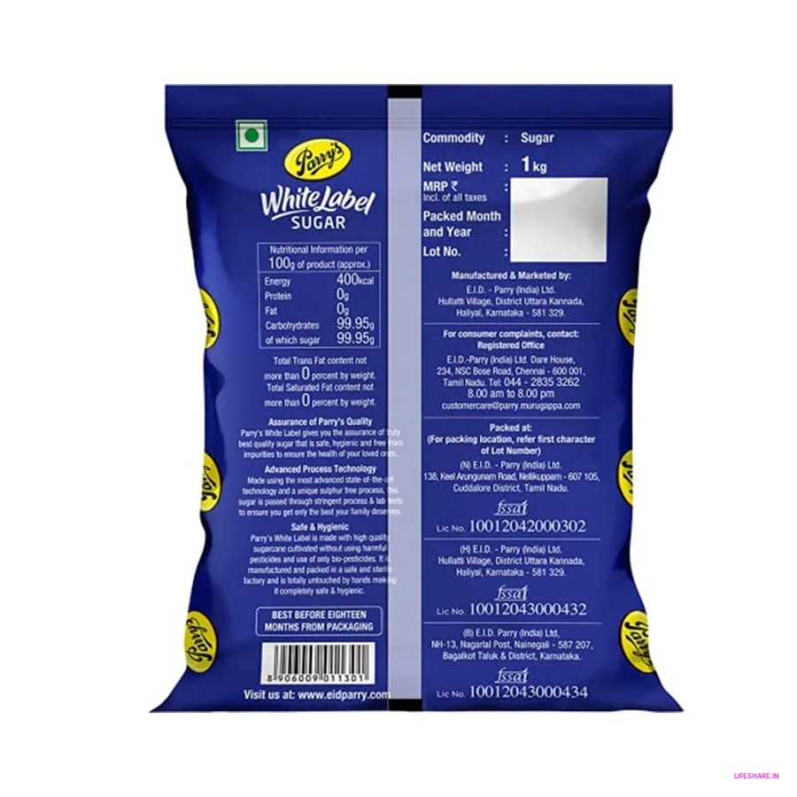 Parrys White Label Sugar is a type of white sugar that is made in India. It is made from sugarcane juice that has been boiled down and then had all the molasses removed. Parrys White Label Sugar has a white color and a sweet, neutral flavor.