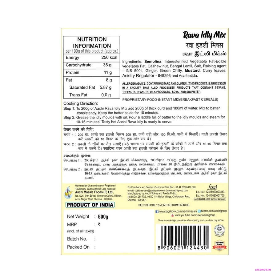 This mix fits seamlessly into your kitchen routine. No matter your schedule, you can enjoy a traditional meal made quickly and safely at home. Aachi Rava Idly Mix is perfect for those who value quality and efficiency, and it guarantees reliable results with minimal effort.