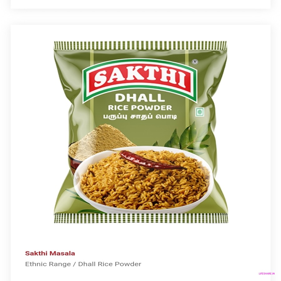 Prepared using high-quality ingredients such as Bengal gram dal, black gram dal, red chilies, curry leaves, asafoetida, and salt, Sakthi Dhall Rice Powder is roasted and ground to perfection to retain its freshness and taste. It is completely vegetarian and free from artificial flavors, preservatives, and added colors.